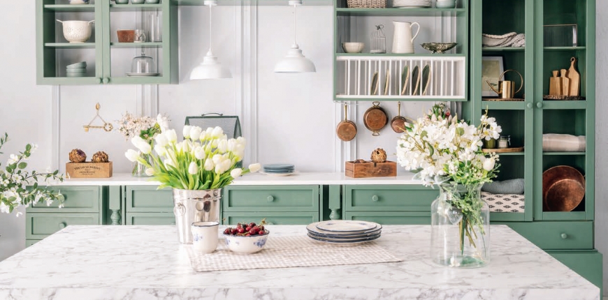 Jak uzyskać w kuchni wrażenie dekoracyjnej schludności, szczególnie kiedy tu właśnie toczy się często życie rodzinne i towarzyskie? Przeszklone witrynki dodadzą kuchni czystej elegancji.